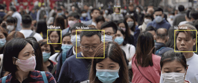 This model detects wheher the person has applied a mask on face or not and tells it's location.